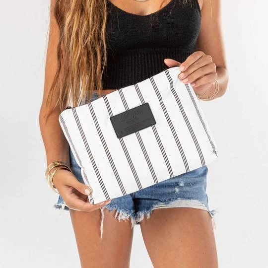 - The perfect companion for your beach tote, stash your sunscreen and tanning oil, or wet bikini in a mid-size pouch to keep your wet stuff separate!