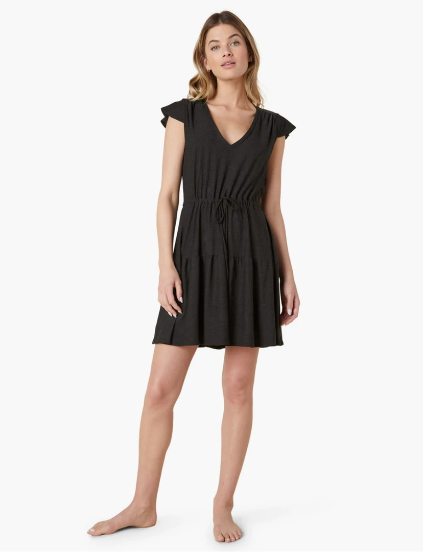 You’ve got places to be, so enjoy this effortless, breezy dress that is as stylish and chic as it is comfy. Made from our fan-favorite Lightweight Spacedye fabric, this versatile and soft all-day dress features flutter sleeves, V-neckline, a tiered skirt that hits above mid thigh and a drawstring waist. You’ll be wearing this everywhere (no lie).