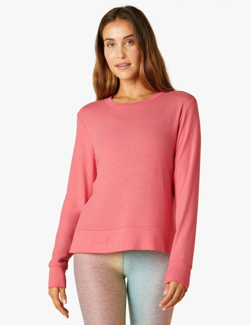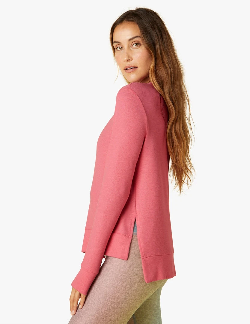 A timeless pullover look – with an edge, thanks to a high-low hem and slits at each side. Long sleeves, crew neckline and a boxy silhouette finish the look for a pullover that will keep you cozy post gym, pre-evening chill, and everything in between. Pair with biker shorts, high waisted leggings, or your favorite denim jeans to carry the look through every season.
