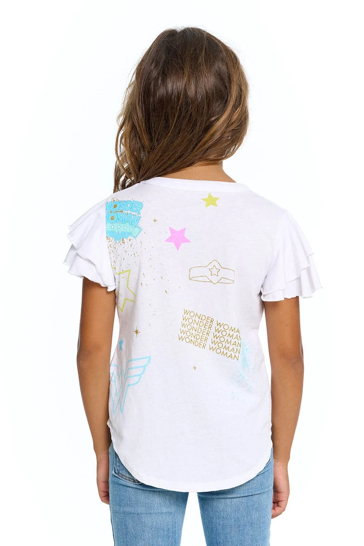 - Wonder Woman Girls Recycled Vintage Jersey Flutter Sleeve Tee