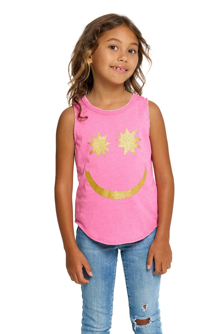 We like to call it our starry-eyed surprise. That’s because this Star Eyes Girls Recycled Vintage Jersey Muscle Tee is more than just a pretty face—it’s consciously crafted with our Eco-friendly fabric for good vibes all around.