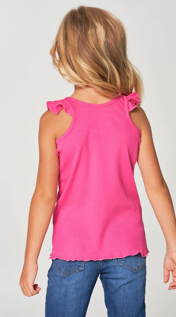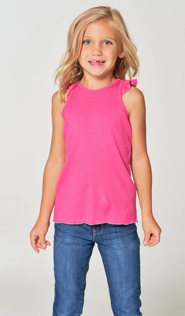 Sun’s out, tank’s out! Stock up her top drawer with the ‘IT’ style of the season: our Girls Recycled Vintage Rib Ruffle Racer Tank in pink. It’s soft, playful and pairs well with just about anything and everything—especially a big smile!