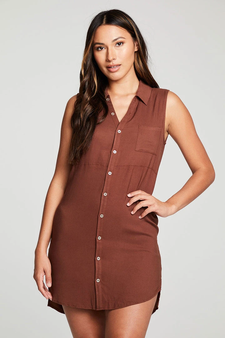 Our Heirloom Wovens Sleeveless Button Down Hi Lo Shirttail Dress features a relaxed fit.