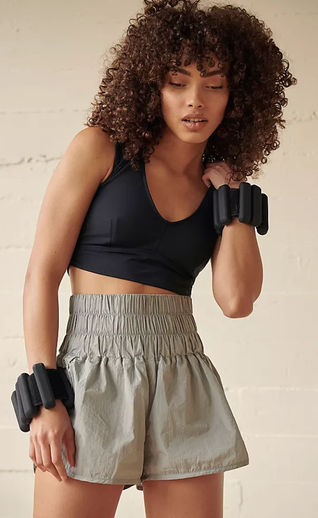 Speed up or slow down in these breezy, warm-up style running shorts, featuring a boldly smocked waistband with a high-rise silhouette and split hem.
