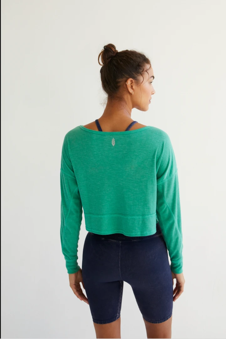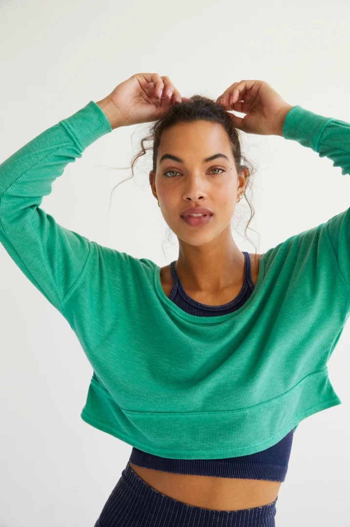 The ideal layering top for any activity, this effortless pullover top is featured in a lightweight fabrication and relaxed, cropped fit for added versatility.