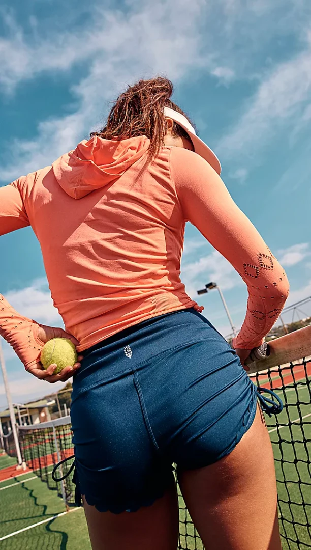 Femme, flirty, and ready to make moves, these scalloped active shorts are featured in a formfitting high-rise design with mid-compression and side-tie details.