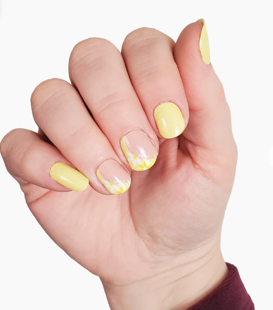 Our Sunshine & Daisies Nail Wrap Set features a sunny solid pastel yellow that will brighten any day. Modern daisy French tip accents adds a touch of spring floral. A fresh new manicure in minutes. Ivy & Ash offers an eclectic selection of thoughtfully curated and designed nail wraps.