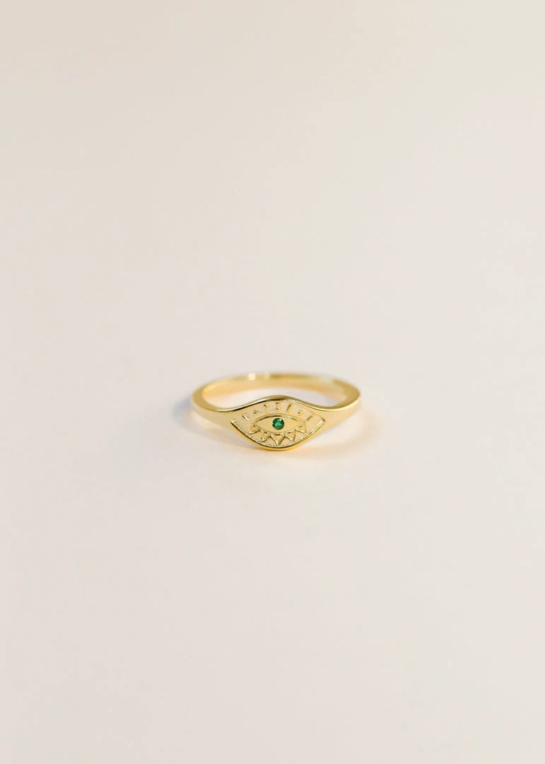 The evil eye is said to guard against misfortune while bringing good luck to the wearer and a small drop of rich emerald green CZ stone represents abundance, prosperity and growth. We crafted our collection of rings to make every day a reminder of joy, self-love, and to shine from within!