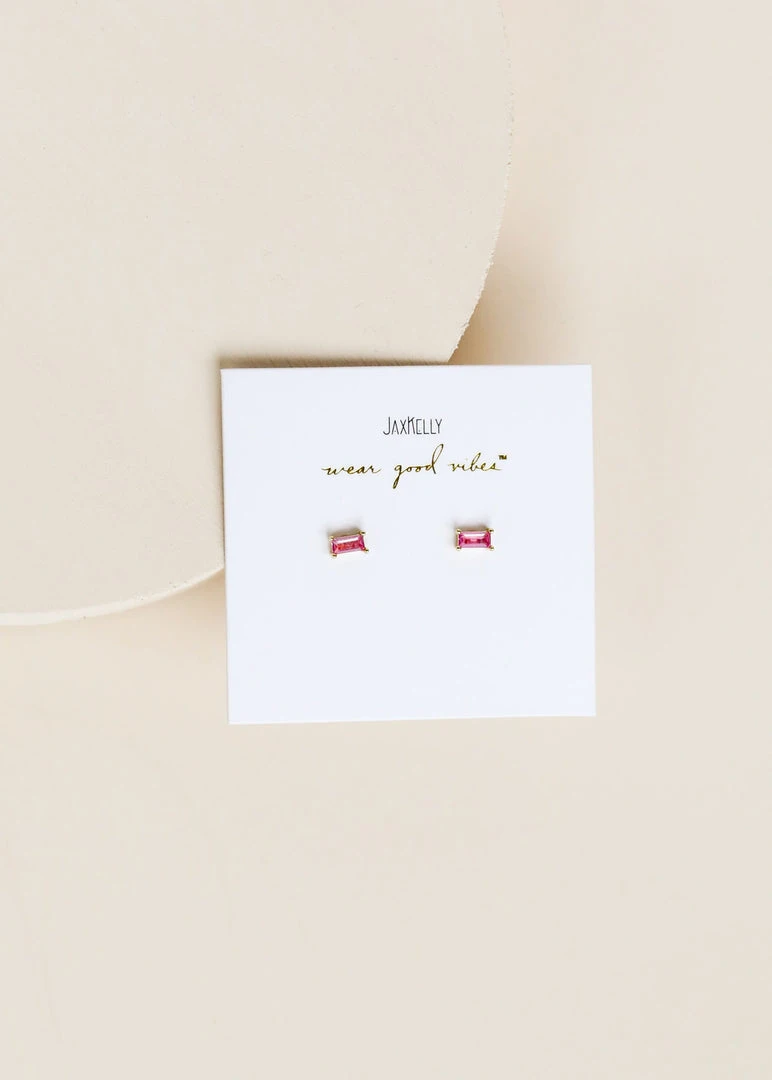 A classic baguette cut for just a flash of color. Made for stacking, layer in this definitive shape for a fresh new take. In delicate pink reminiscent of energetic spinel gemstones and rose petals.