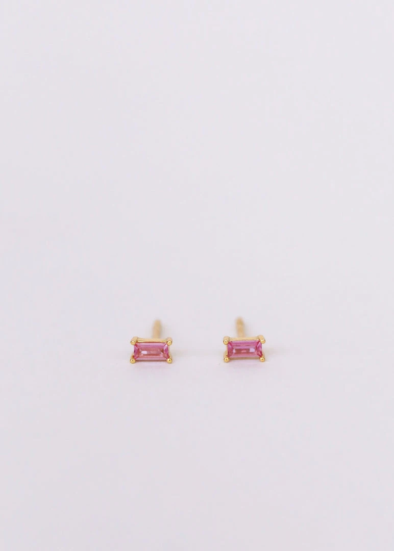 A classic baguette cut for just a flash of color. Made for stacking, layer in this definitive shape for a fresh new take. In delicate pink reminiscent of energetic spinel gemstones and rose petals.