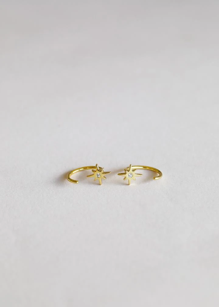 Our dainty Star Huggies will stand out from the rest and are perfect for everyday wear. Loop these through and let this pair “hug” your ears tight.