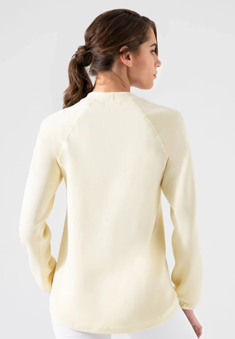 An ode to your regular sweat shirt but oh-so-soft. With a hi low hem, elastic cuff and flat lock detail it is the balance between sport, comfy and chic.