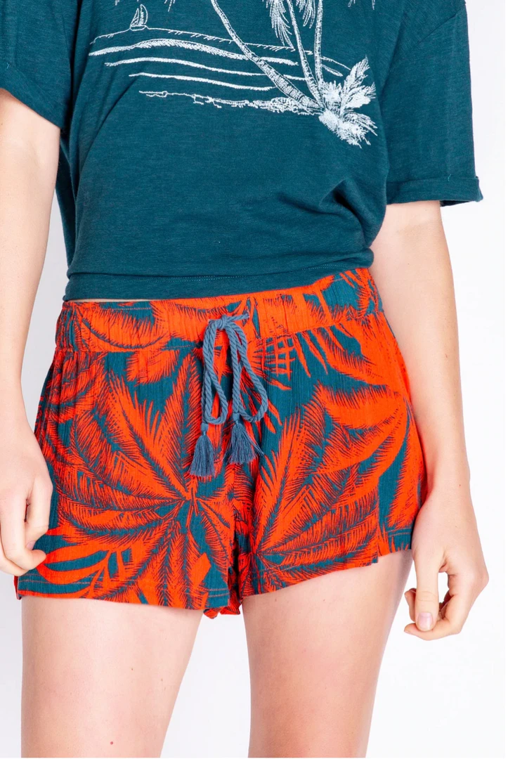DESCRIPTION:Â A perfect woven gauze lounge or sleep short in a bold, saturated palm print. A flowy This style was made in a *Women Empowered Factory (*At least 51 percent owned, controlled, or managed by a woman or women.)