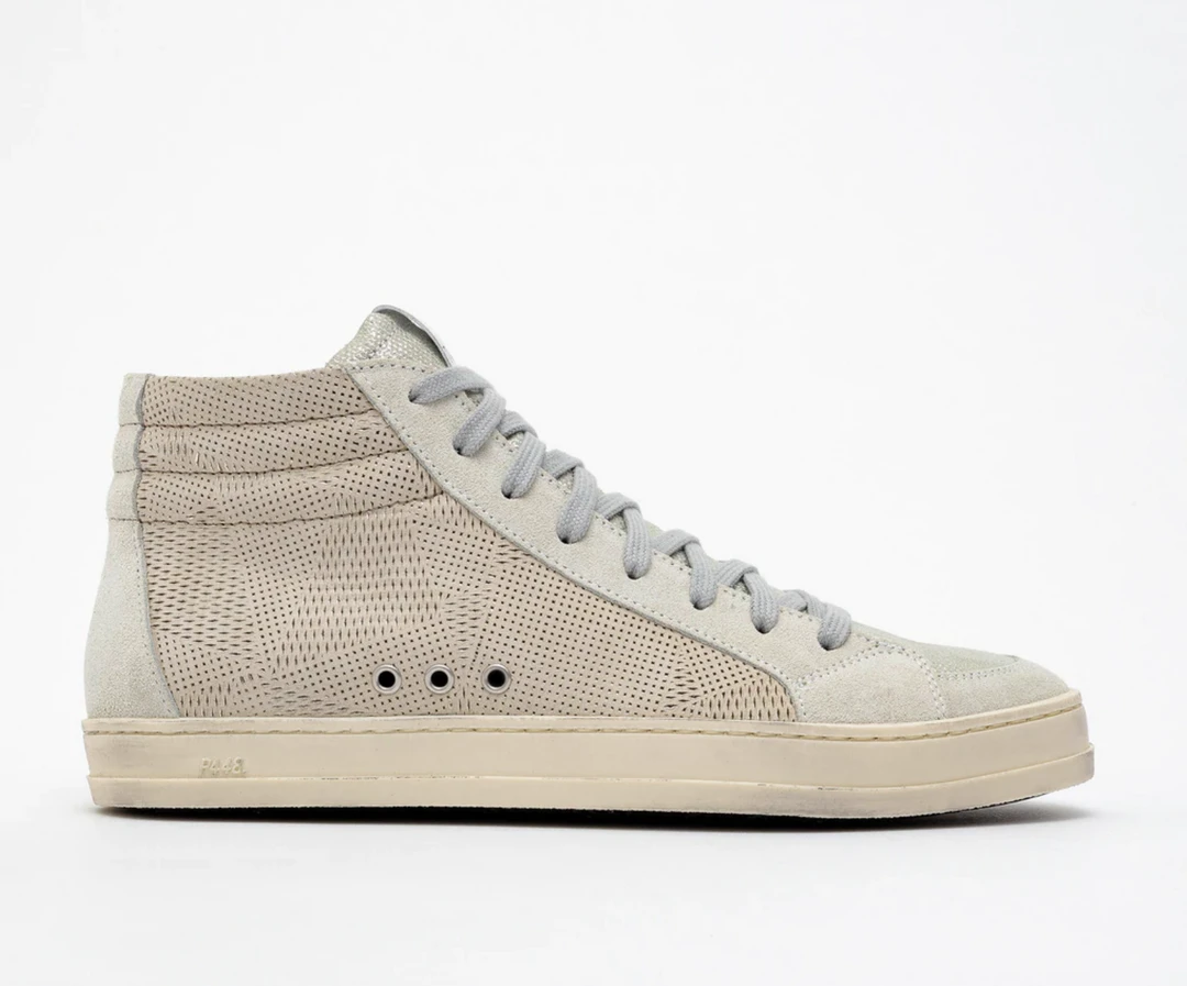 - Outside upper in laser-cut beige suede with metallic gold underlay