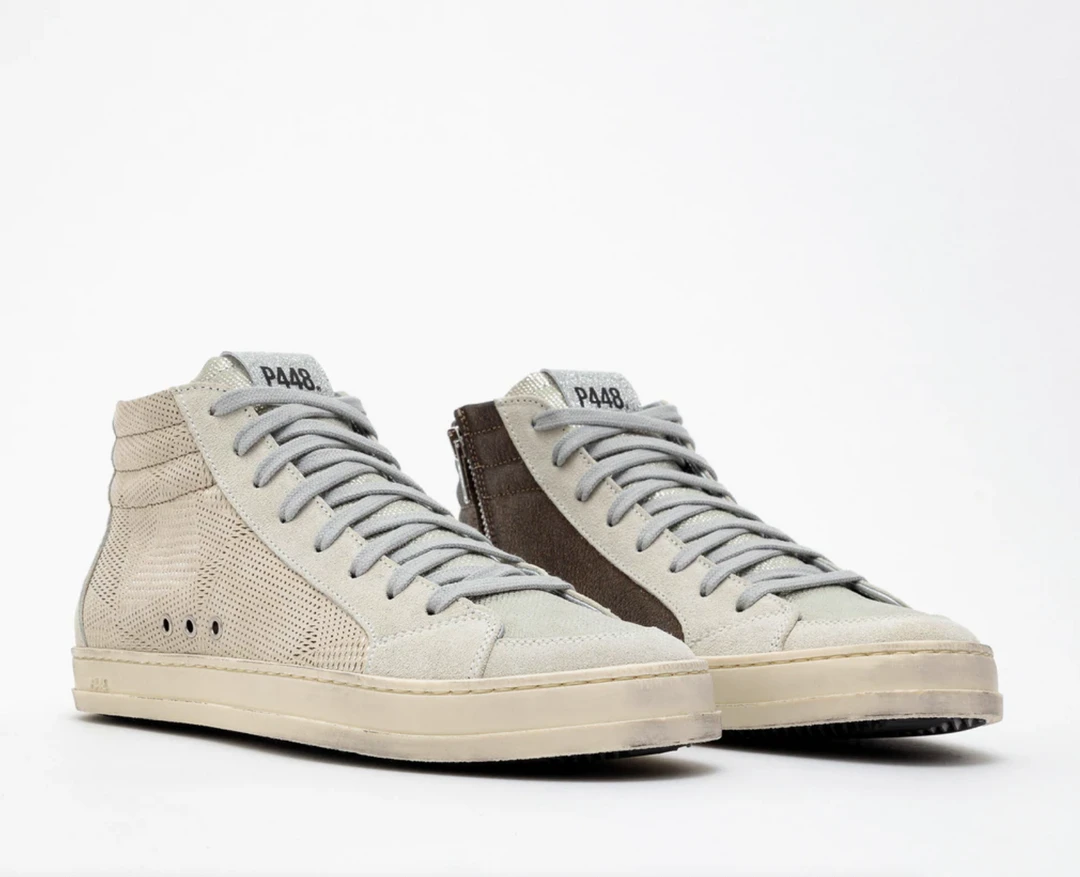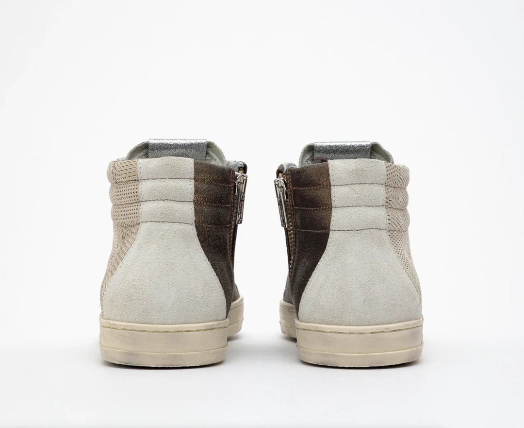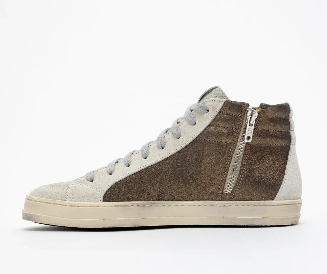 Expect the unexpected. Meet the Skate Prisma, featuring a beige suede outside upper with a metallic gold underlay, a metallic bronzed leather inside upper, a beige suede tongue, cashmere suede trim, toe, and heel tab and grey cotton laces.