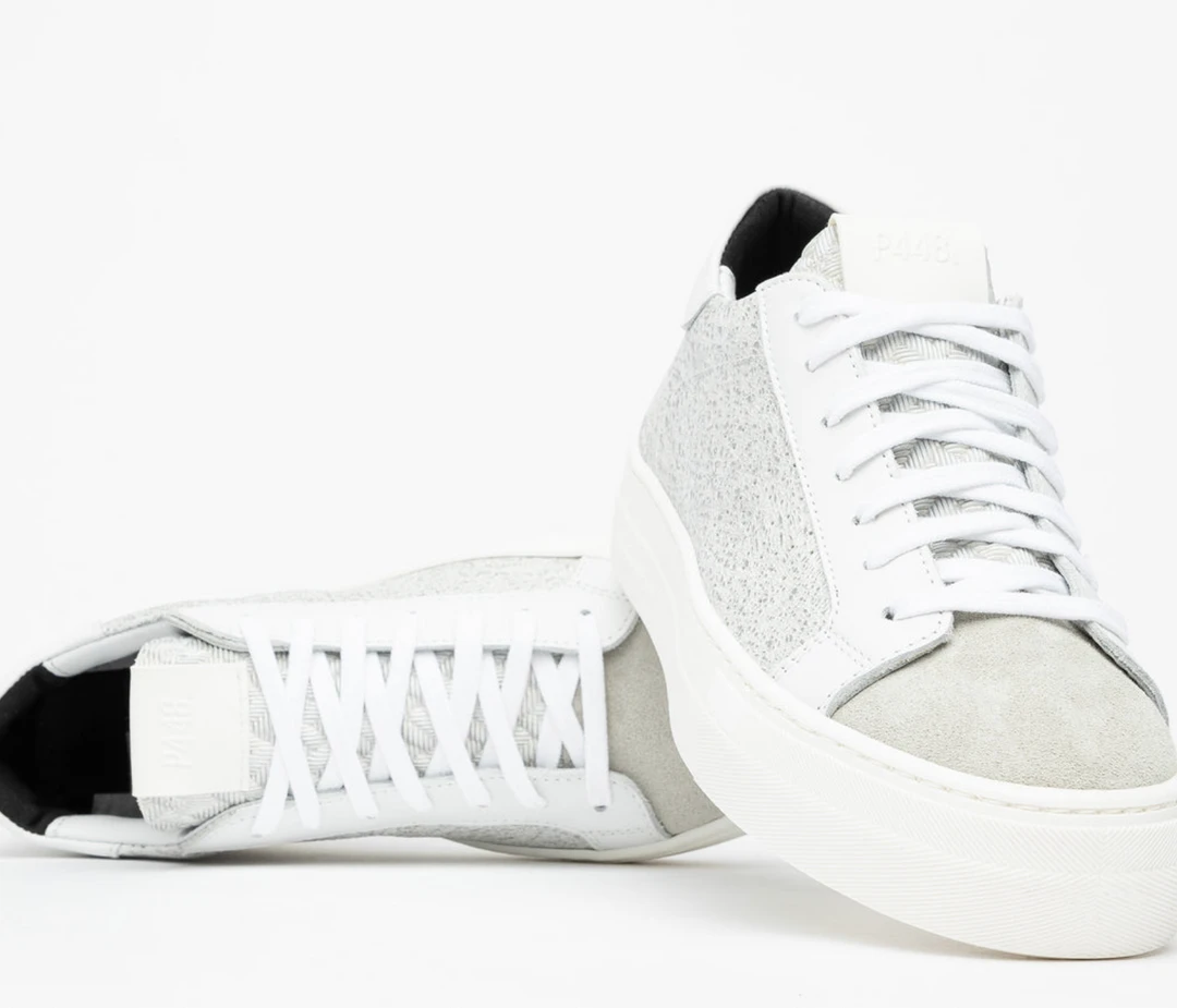- Textured silver leather upper with perforated P448 logo
