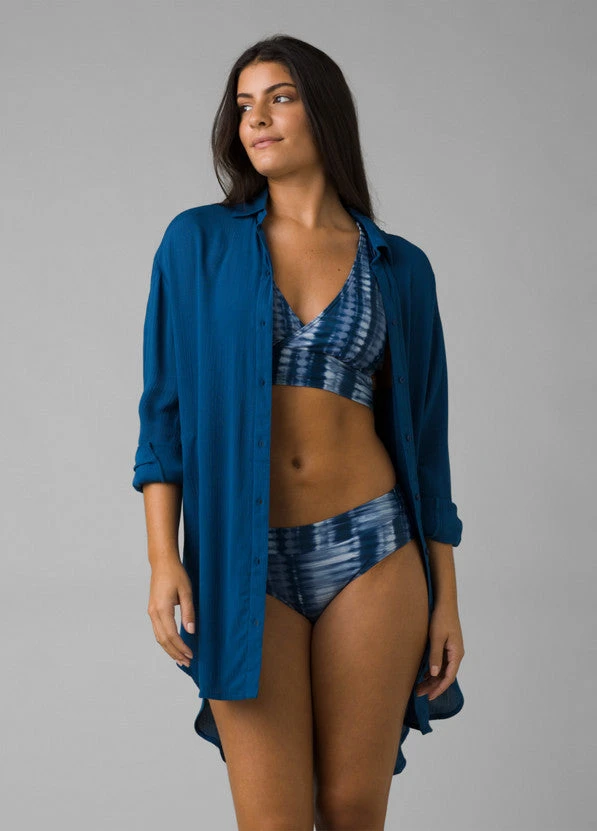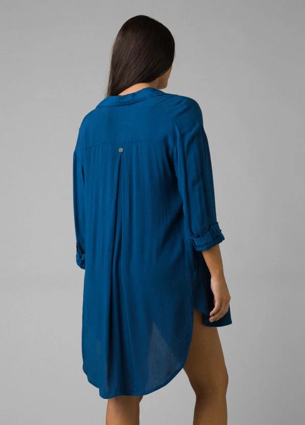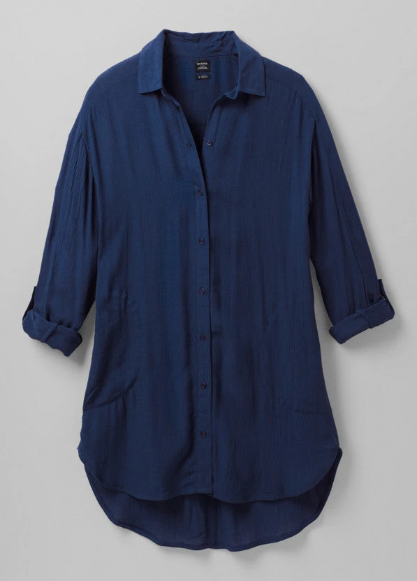 This long-sleeved tunic style has a comfortably relaxed fit and casual mid-thigh length, so it makes for a perfect swimwear cover up. On the other hand, it still looks buttoned up (pun definitely intended) for post-beach day drinks at a local brewery.Â
