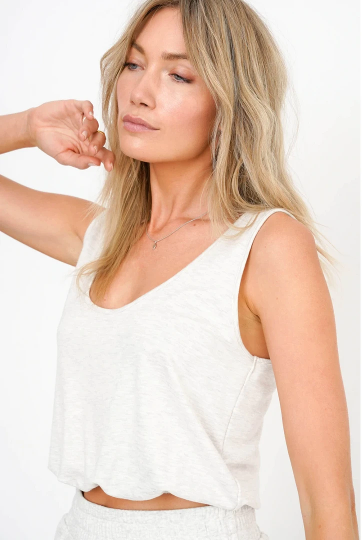 The Delilah Bubble Tank is the perfect Summer go-to for whatever your day has in store. With wide straps, a scoop neck, bubble hem, and our buttery soft french terry fabric, it’s an ultra flattering tank. Wear to show off your tan or throw on over your favorite swimsuit while en route to the beach.Â