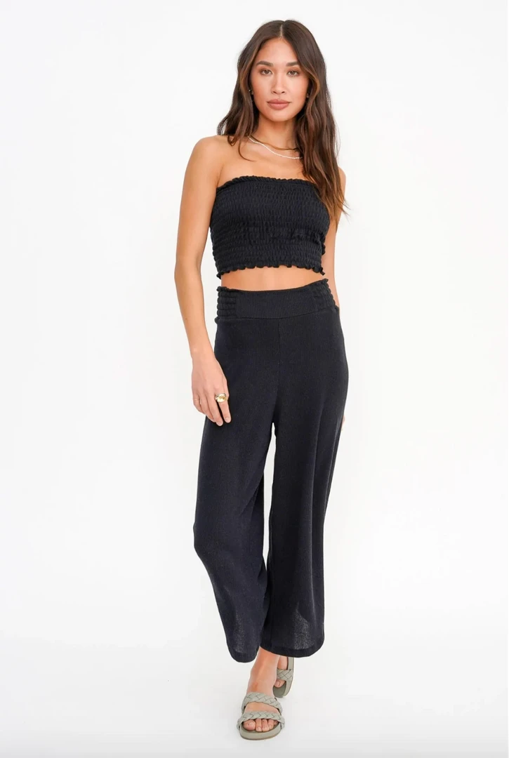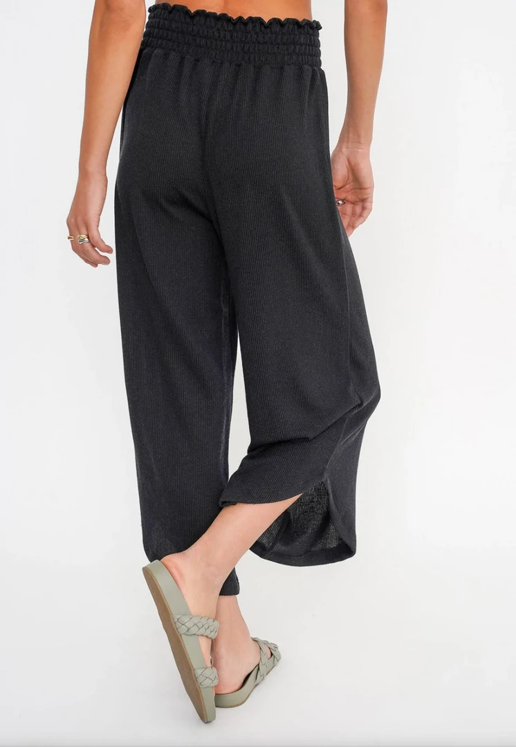 Our Falling For You Wide Leg Pant is the easy breezy style solution you’re after this Summer. Featuring an elastic smocked waistband, rib knit fabric, and culotte silhouette, this pant is happy to be dressed up or down.Â