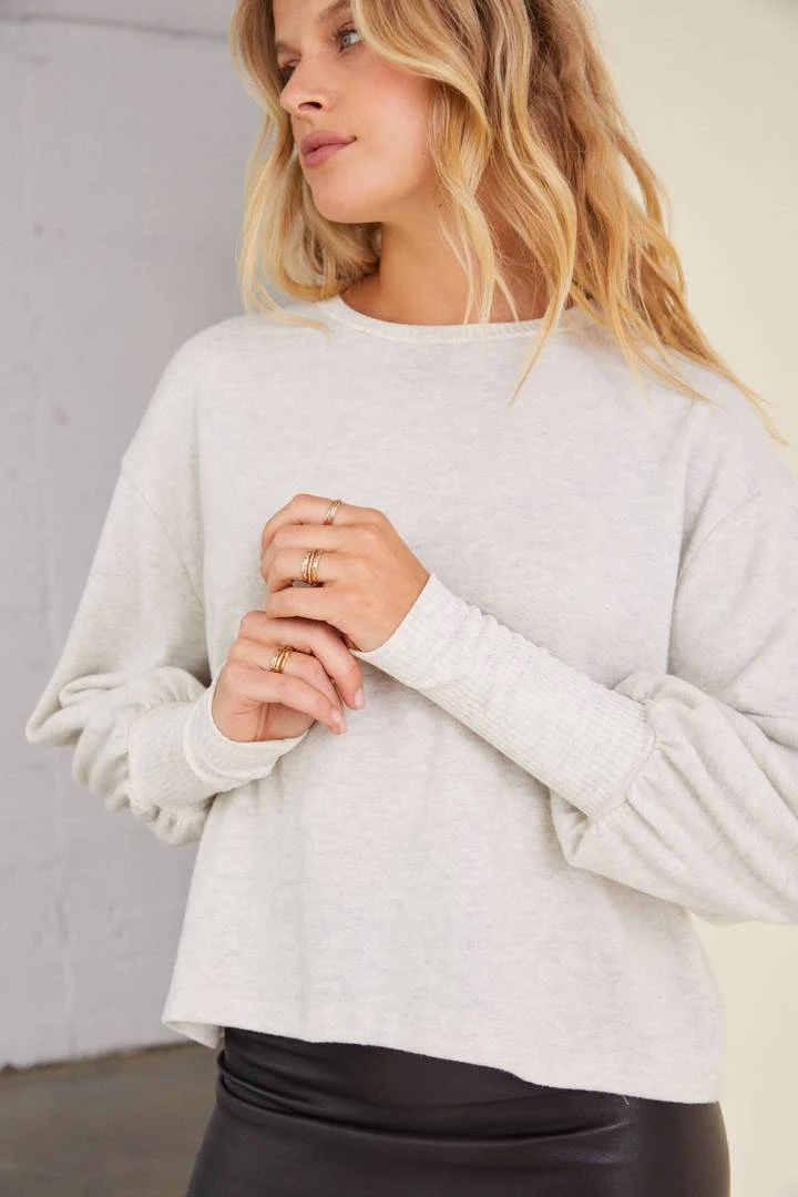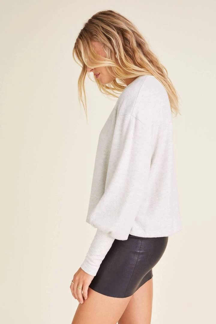 The Kain Cozy Crew does not compromise in comfort and style. This relaxed fit sweater is made in our soft signature double brushed fabric. Features balloon sleeves with long banded cuffs. Wear with jeans, mini skirt, shorts, you name it – it’ll look good together.