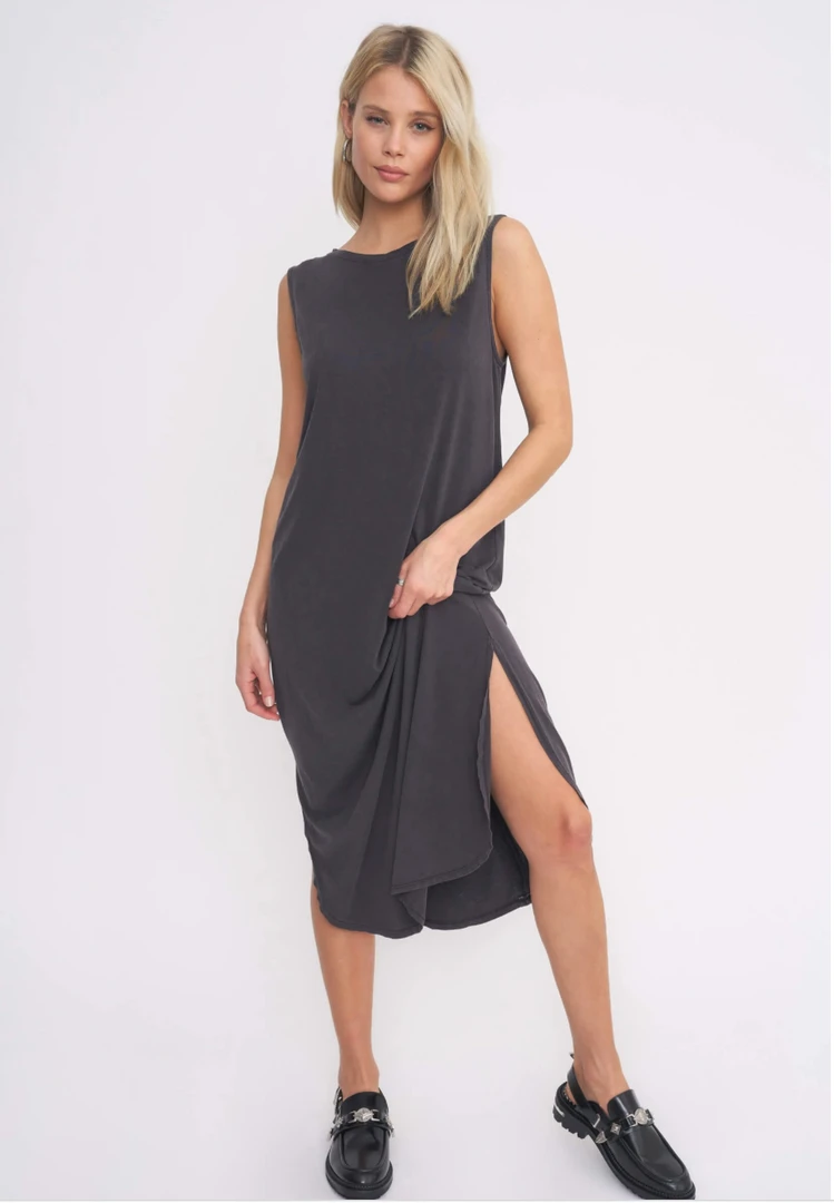 Made in our buttery soft cotton jersey fabric, this dress features a crew neckline and an easy fitting silhouette. Snap closures at the back and a shirt tail hemline elevate this style beyond a basic. This crazy comfortable dress is the only thing you’ll be wearing this season.