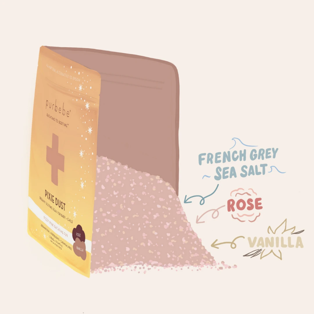 - Pour — desired amount of salt blend into warm bath water (recommended: 2 handfuls)