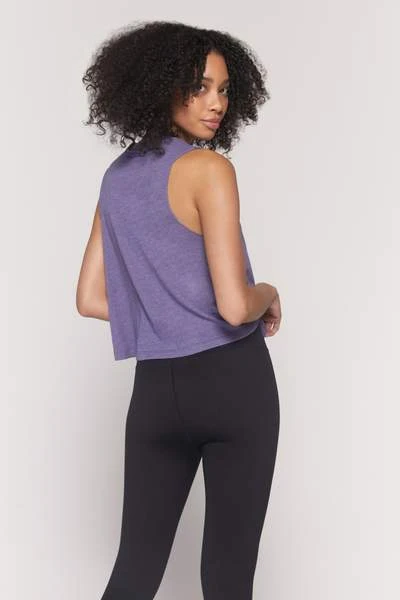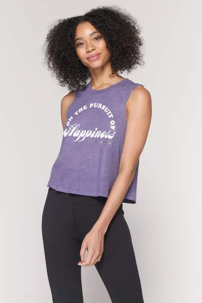 Start your journey and the path appears. Always be in the pursuit of happiness in our super soft and versatile Crop Tank. Featuring a crew neck, raw, slightly dropped armholes, and made from our ultra soft tri-blend jersey fabric. Perfect for finding your flow on and off your mat, pair the Crop Tank with biker shorts or your favorite high waisted leggings or biker shorts.