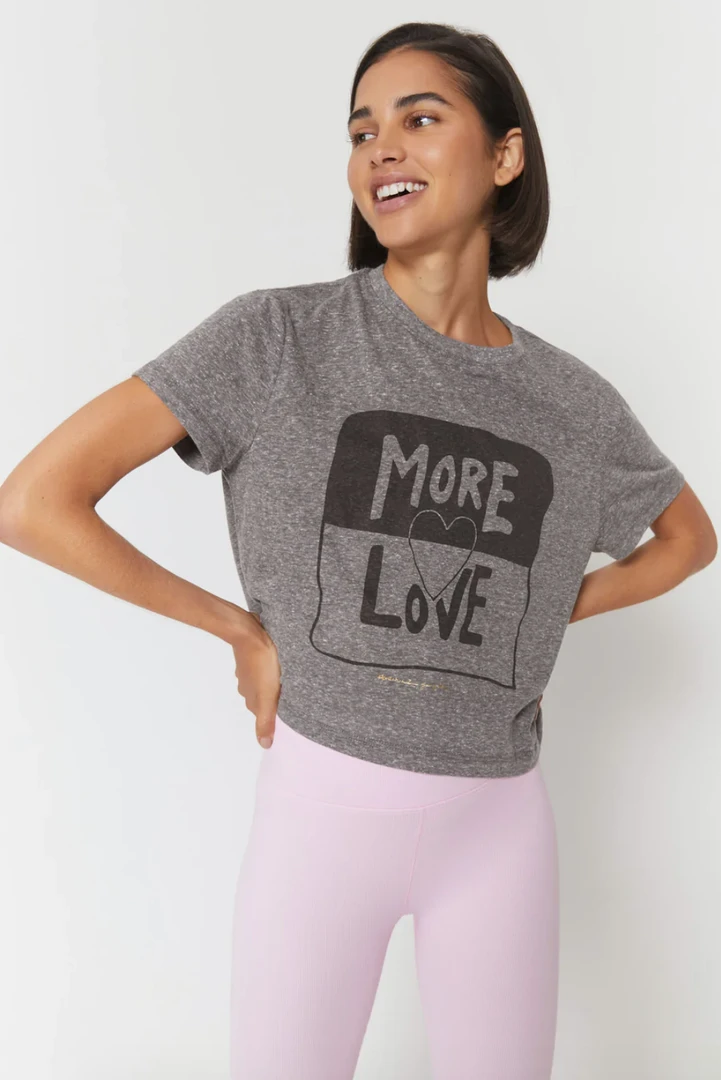 Spread love and positivity in the new Crop Tee (aka our new favorite tee of the season), designed in a soft tri-blend jersey. Inspired by our best-selling Crop Tank and Perfect Tee styles, it delivers the best of both worlds with a subtle cropped length that hits right at the top of the your waistband, making it versatile enough to be styled out or tucked in.