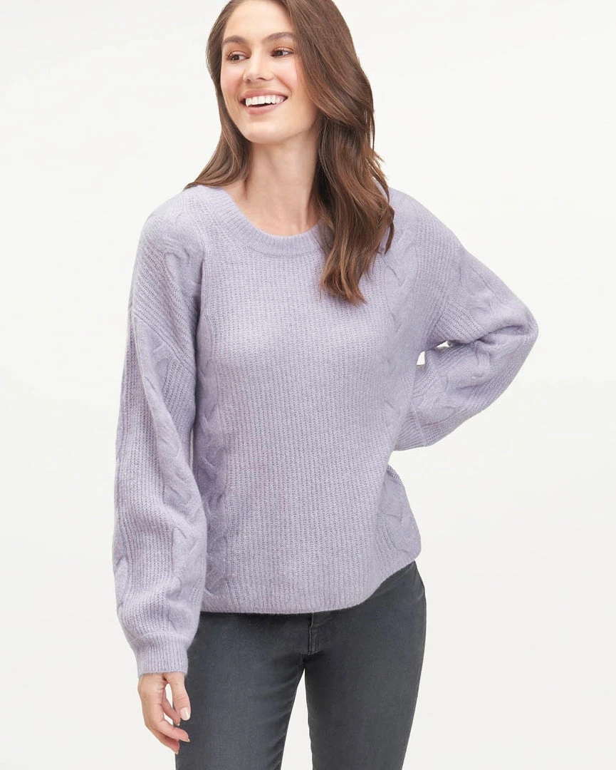 Our Natalia Sweater is crafted from Lodge yarn — a lightweight and fuzzy wool blend that’s not heavy or itchy making it a transitional, seasonless piece. Crafted with beautiful cable pattern, it’s the perfect ‘throw-it-on-with-jeans’ sweater.