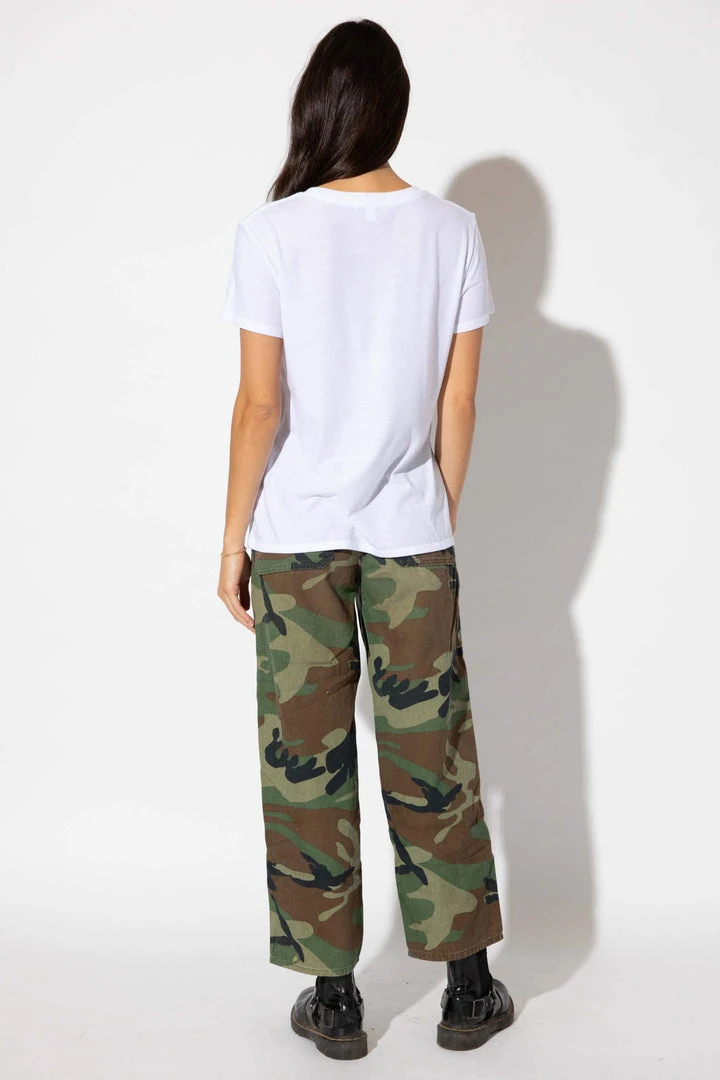 Basic loose boyfriend fit crewneck tee. Pre-washed tri-blend jersey. 50% poly, 25% cotton, 25% rayon. Machine wash cool, tumble dry low, wear often.