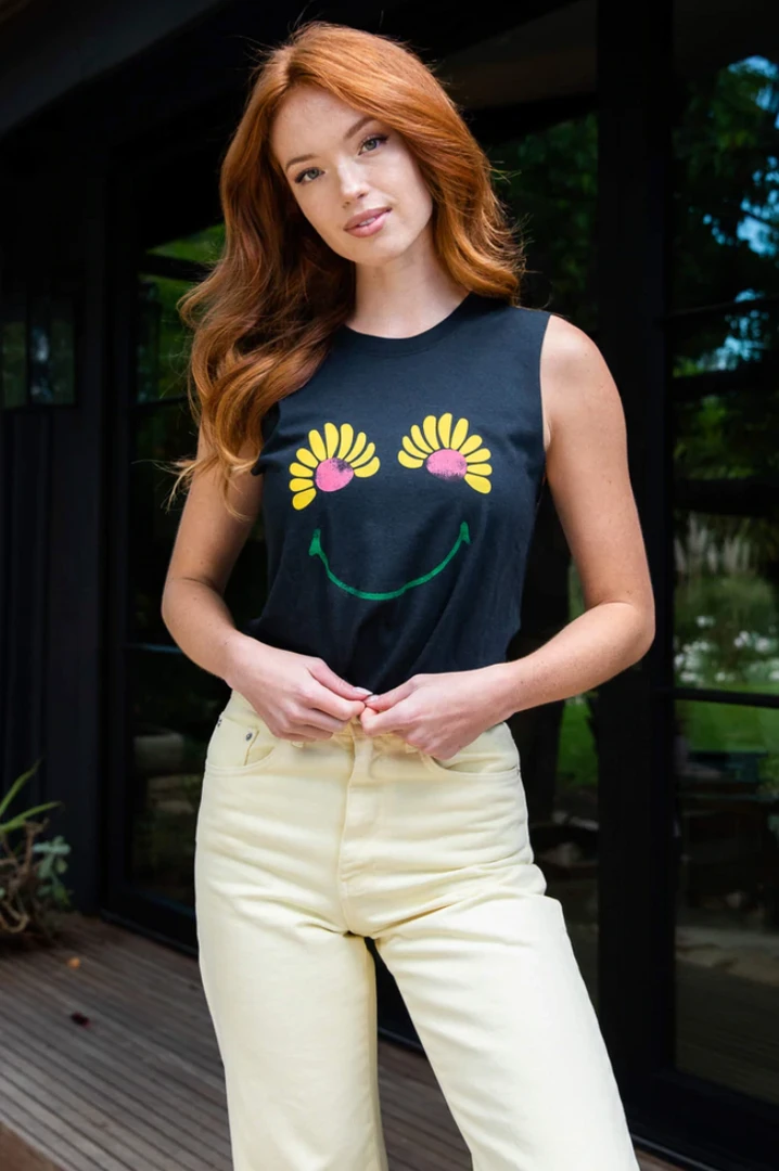 Sub_Urban Riot Flower Smile Muscle Tank Black