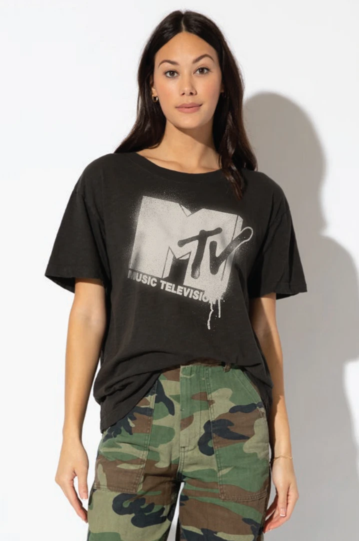 Sub_Urban Riot MTV Spray Paint Boyfriend Tee Faded Black