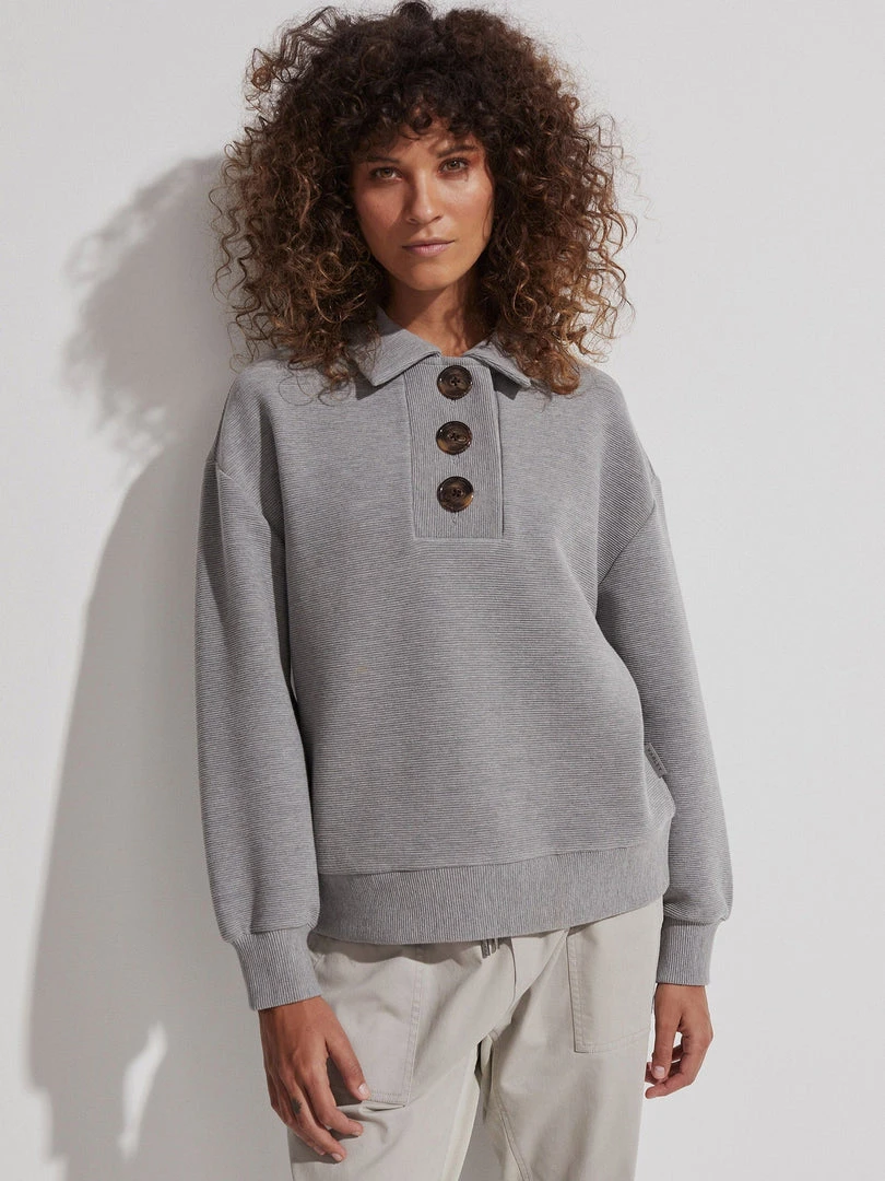 The Andale makes its debut. Crafted in a marled incarnation of our signature Ottoman rib, this refined but relaxed sweat has a buttoned collar, dropped shoulders and full sleeves. At once luxurious and cosy, it may be multilayered or worn alone.