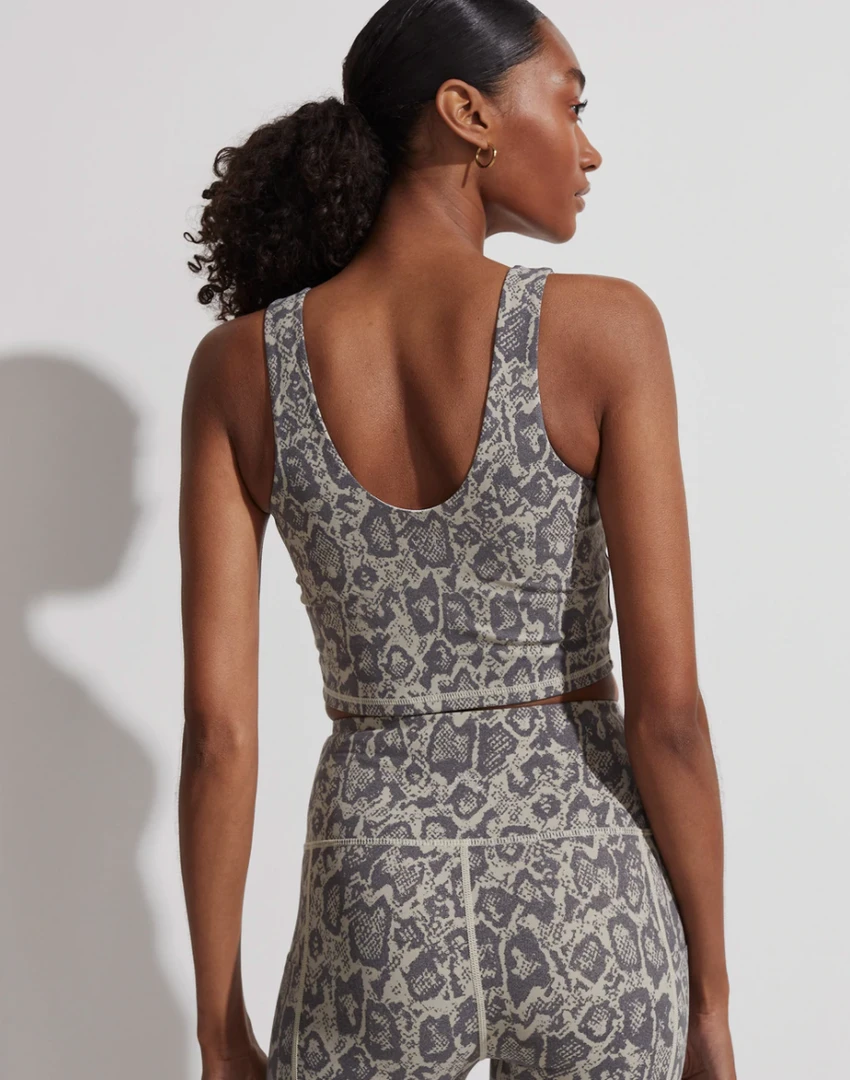 An elegant, long-line, tank-style bra with a generous, scooped neck at both the front and the back. Cut in our recycled, compressive Let’s Go fabrication, it features excellent moisture management and breathability. This style has an inner shelf for superior comfort and support, while removable cups ensure the perfect fit.